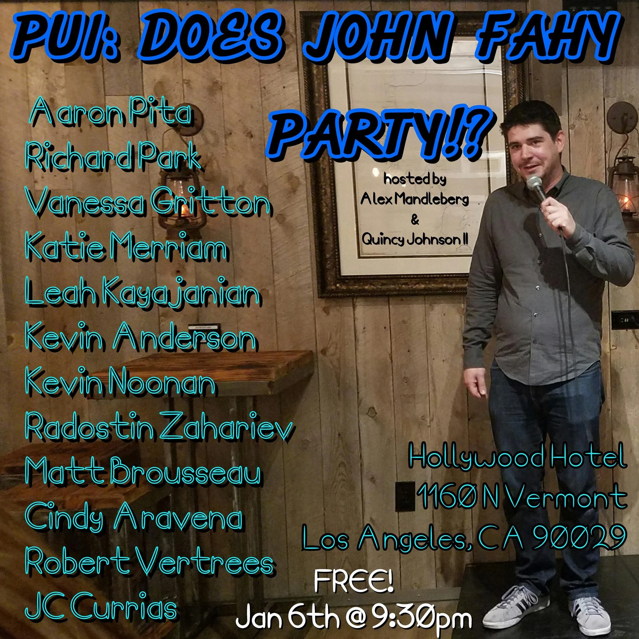 We're celebrating John Fahy's birthday with a very special Performing Under the Influence. Each comedian does one set completely sober and then a second set completely messed up, under the influence of their choice.